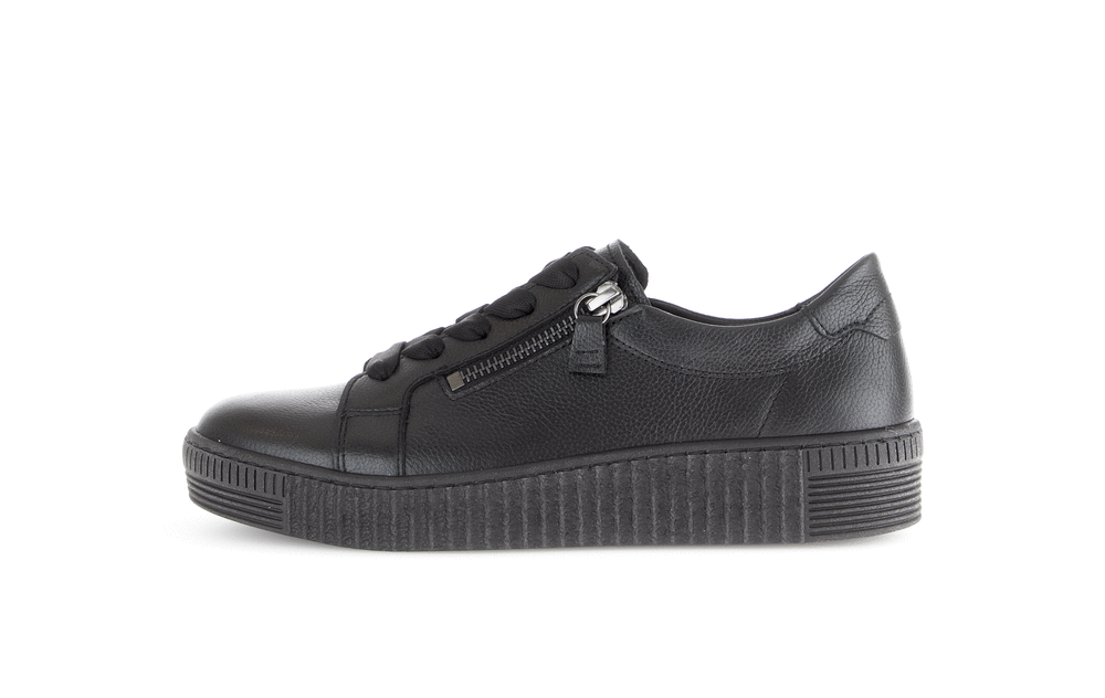 £95.00- Gabor Black Lace Fronted Double Zip Side Access Casual Walker