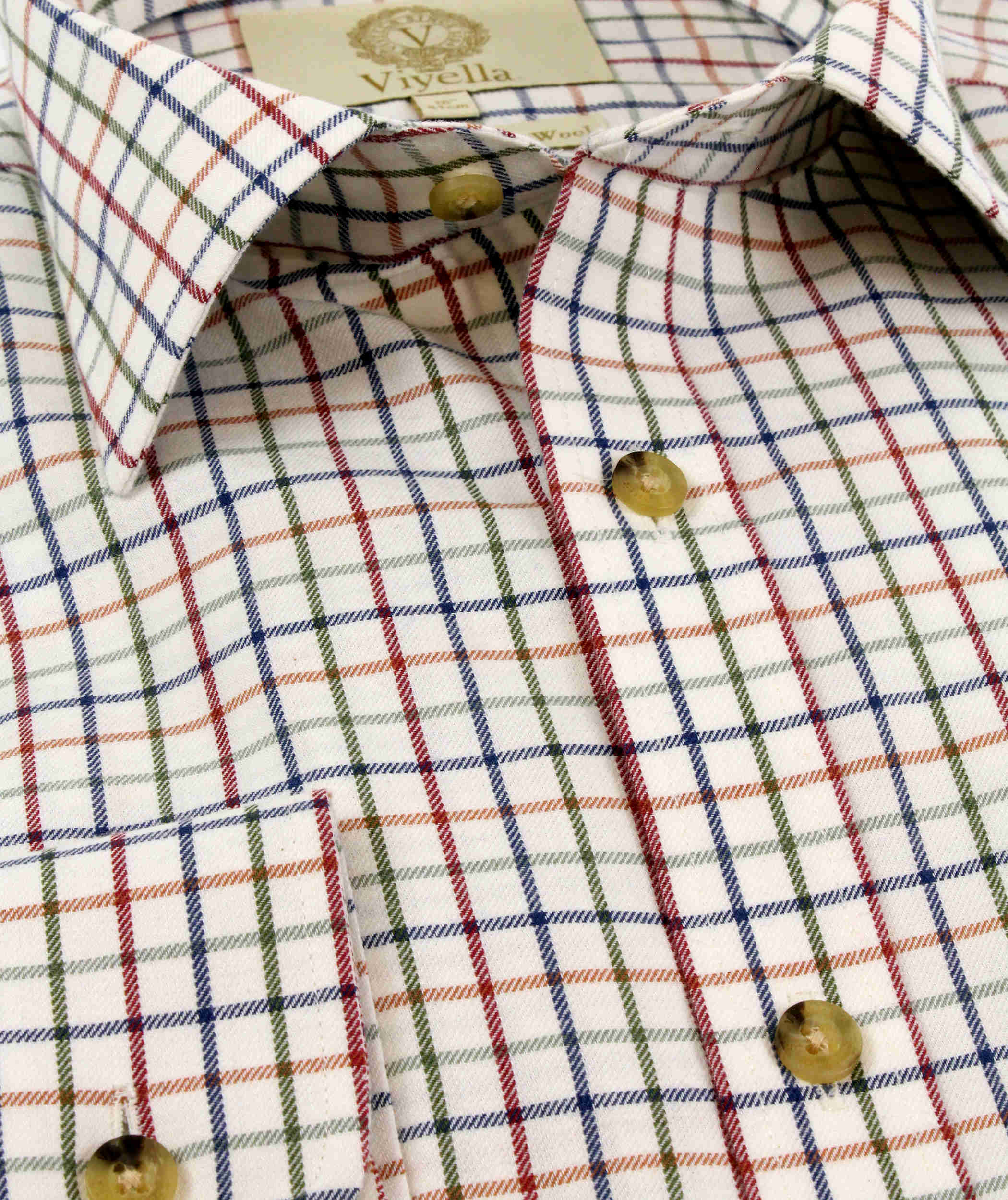 £95.00- Viyella Cream Background with Country Colours Tattersall Check Winter Long Sleeve Casual Shirt