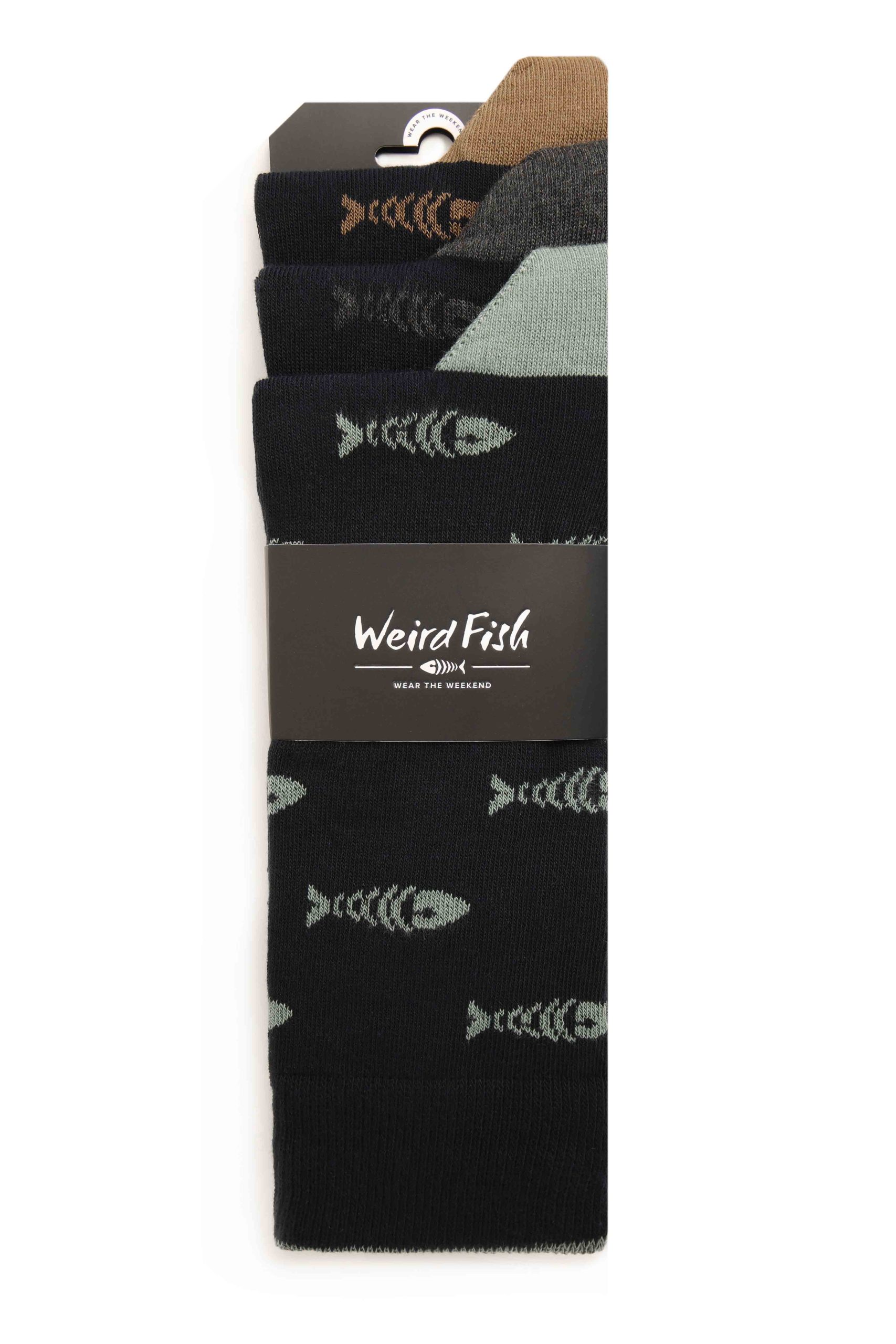 - Weird Fish 3 Pack of Grey, Back and Navy Ronan Bones Socks