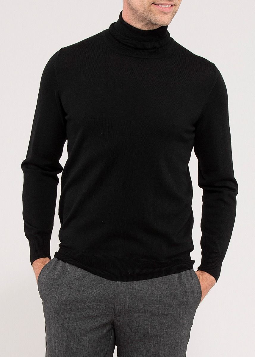 Alan Paine Merino Wool Roll Neck Long Sleeve Pullover In Black