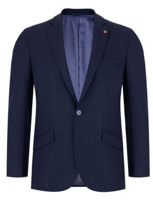 Douglas. Plain Navy Tweed Feel 2 Button Single Breasted Jacket with Side Vents.