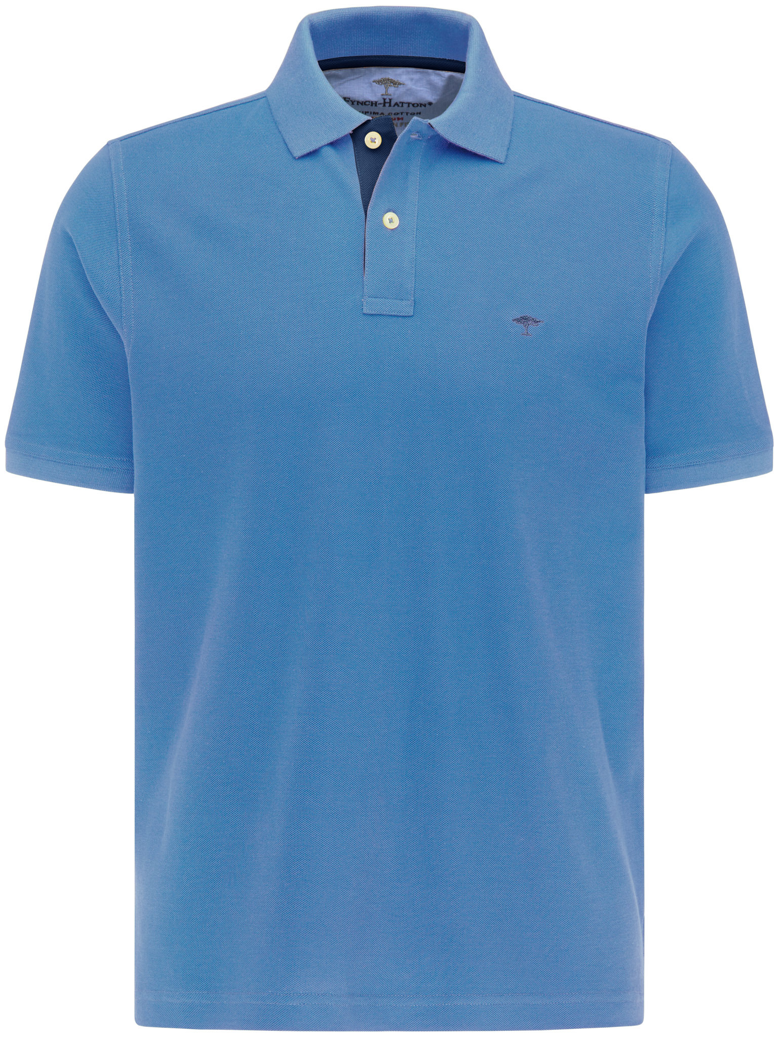 Fynch Hatton. Plain Supima Cotton Polo top in Sky, with flat knit collar, contrast placket and button fastening.
