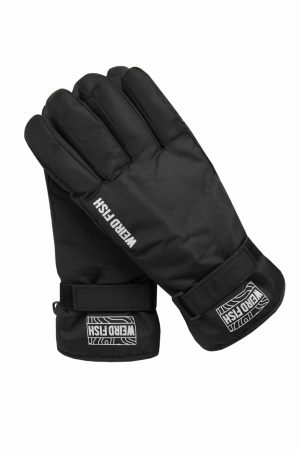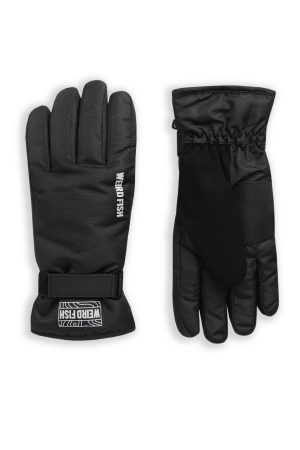 Weird Fish Black Insulated Waterproof Gloves with Fleece Lining and Adjustable Wrist Strap