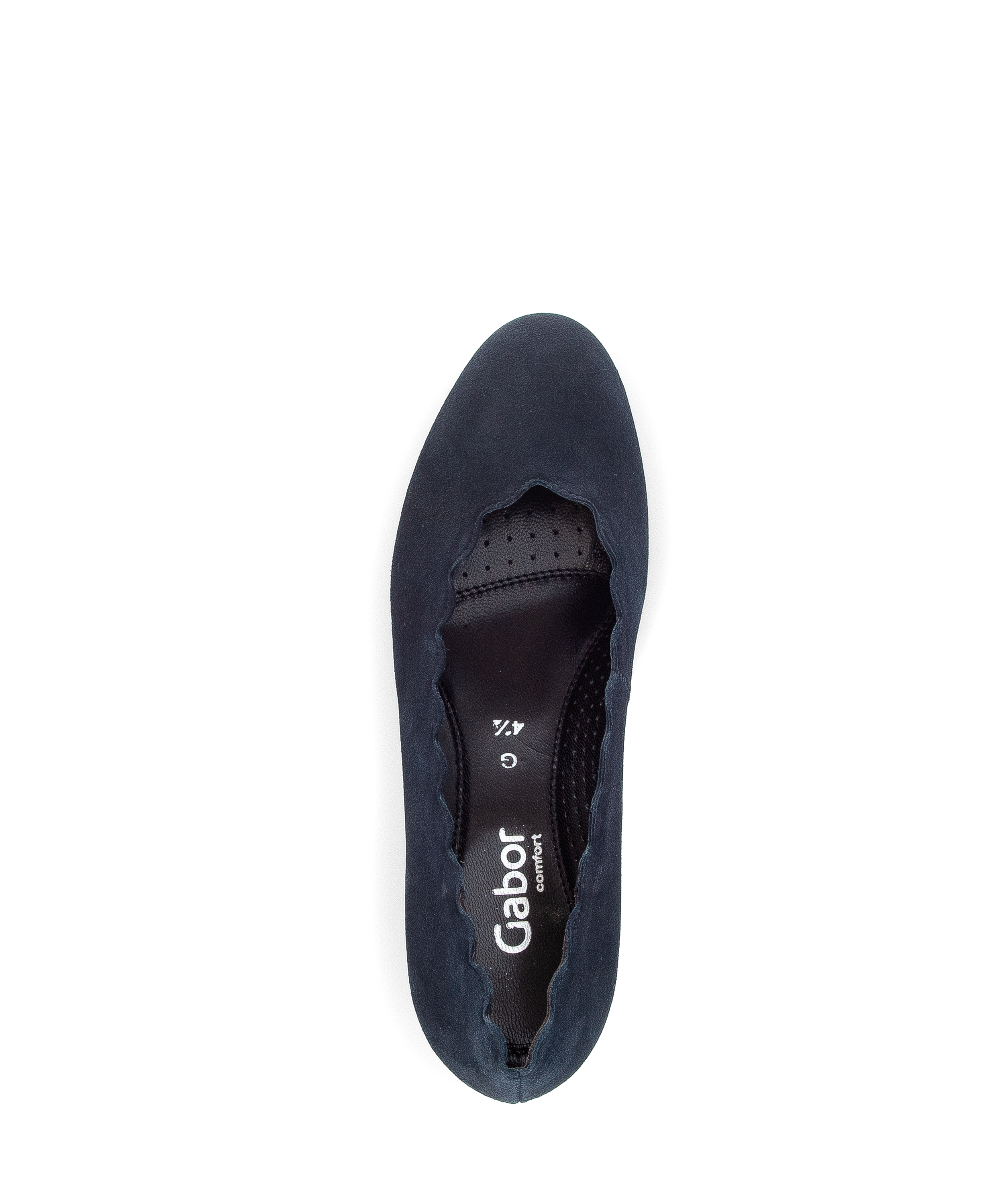 - Gabor Navy Suede Wave Top Line Cuban Block Heel Court Shoe.