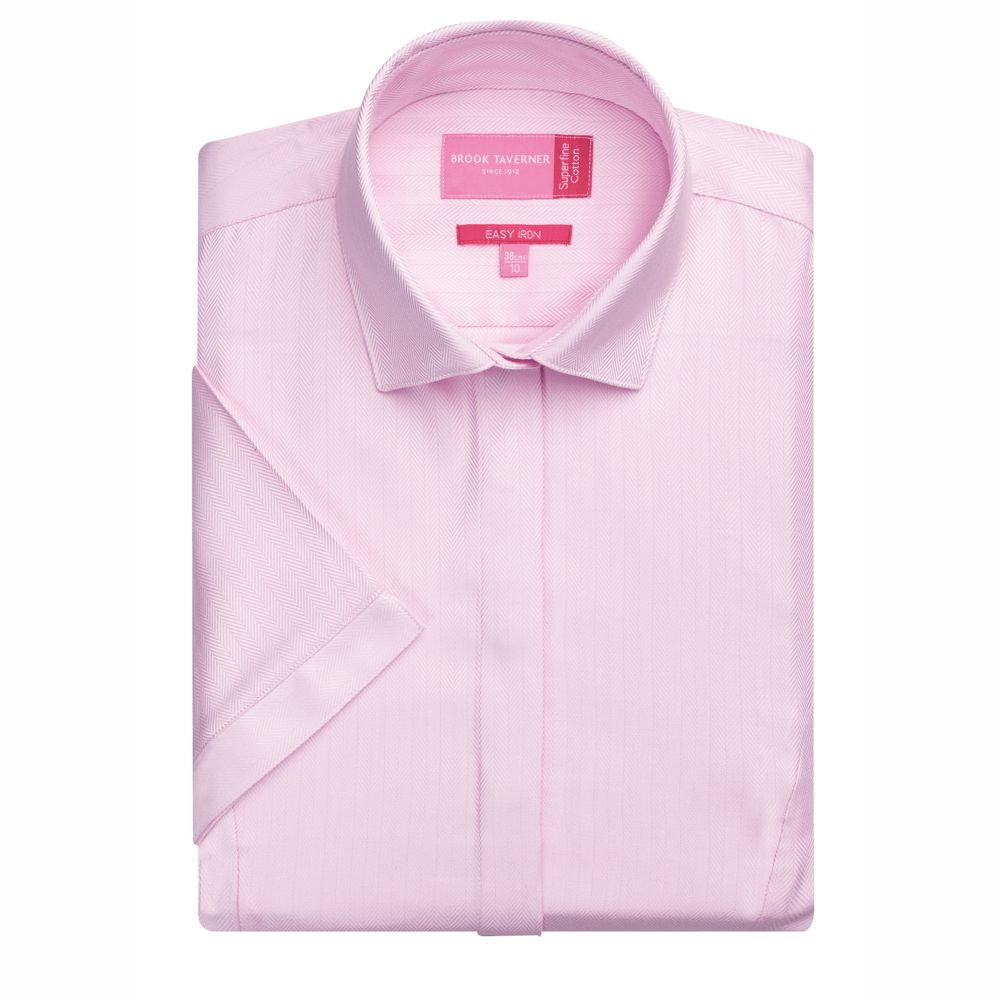 Brook Taverner Corporate. Ladies Pink Herrinbone Semi Fitted Short Sleeve Blouse.