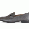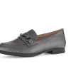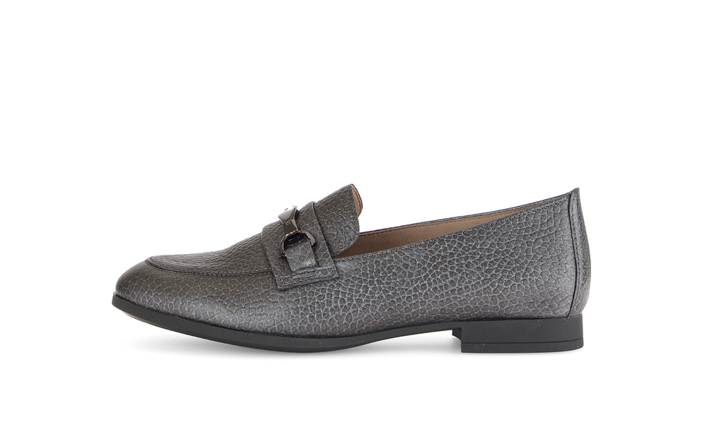 Gabor Grey Grain Leather Flat Shoe with Smoke Grey Snaffle