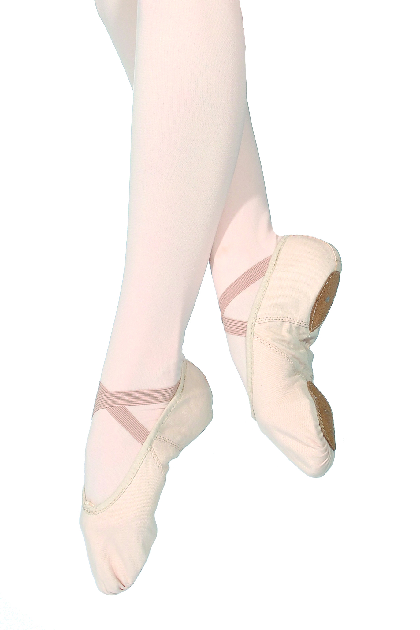 Roch Valley. Premium ballet shoes with canvas uppers, Split suede soles and Presewn Elastic