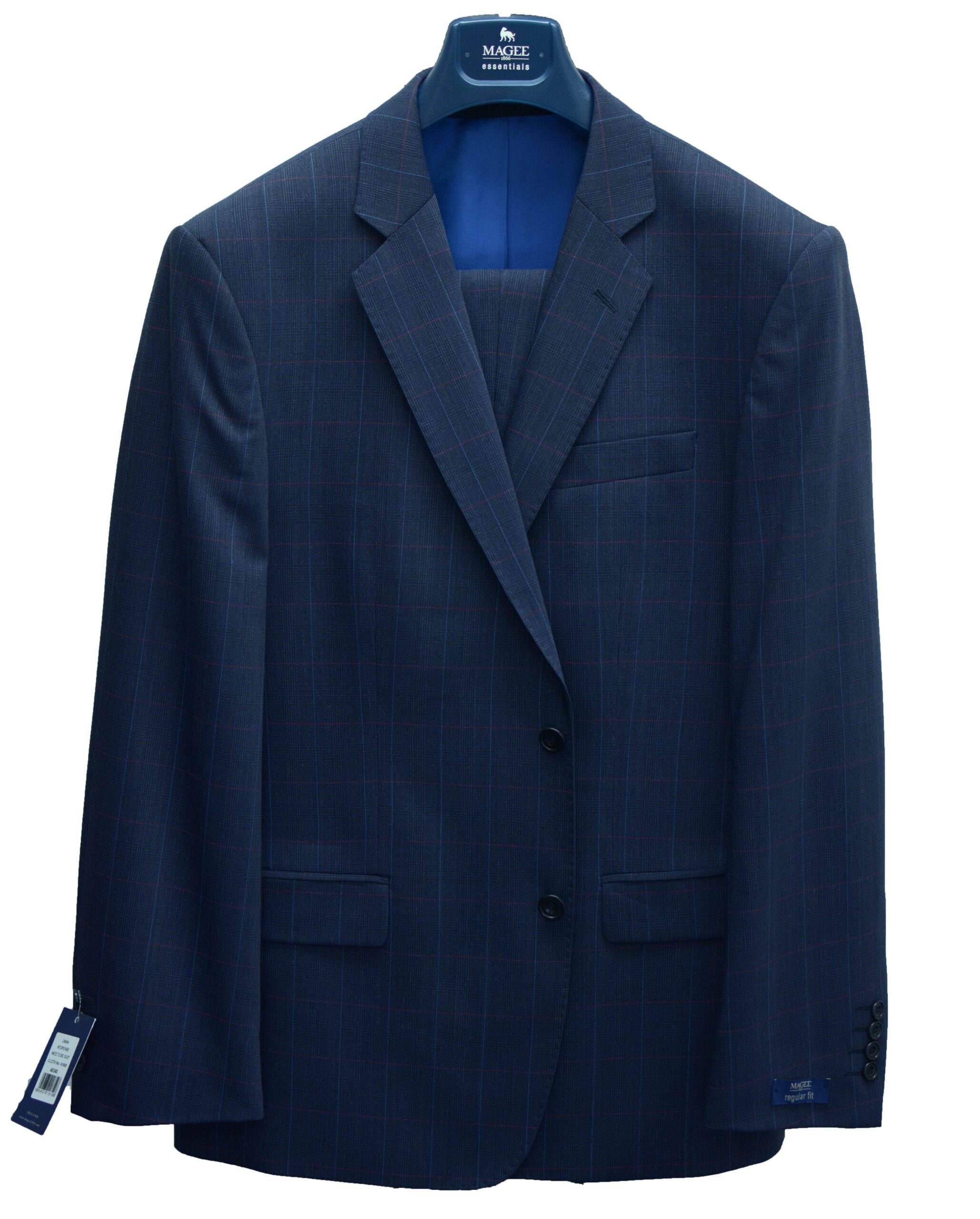 • Magee. Navy Check Single Breasted 2 Piece Suit.