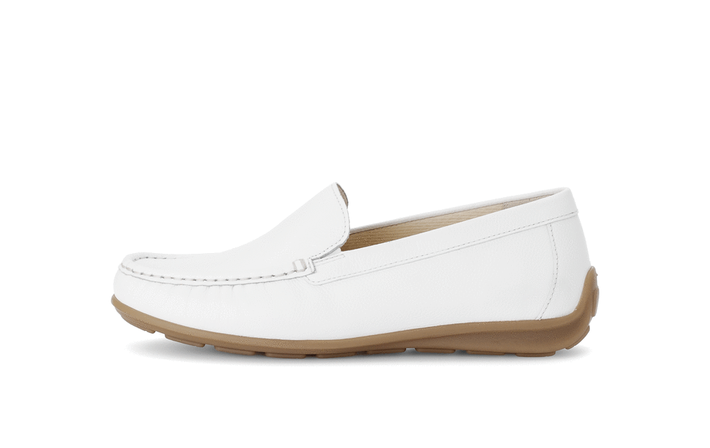 Gabor White Leather Low Heel Driving Style Casual Shoe