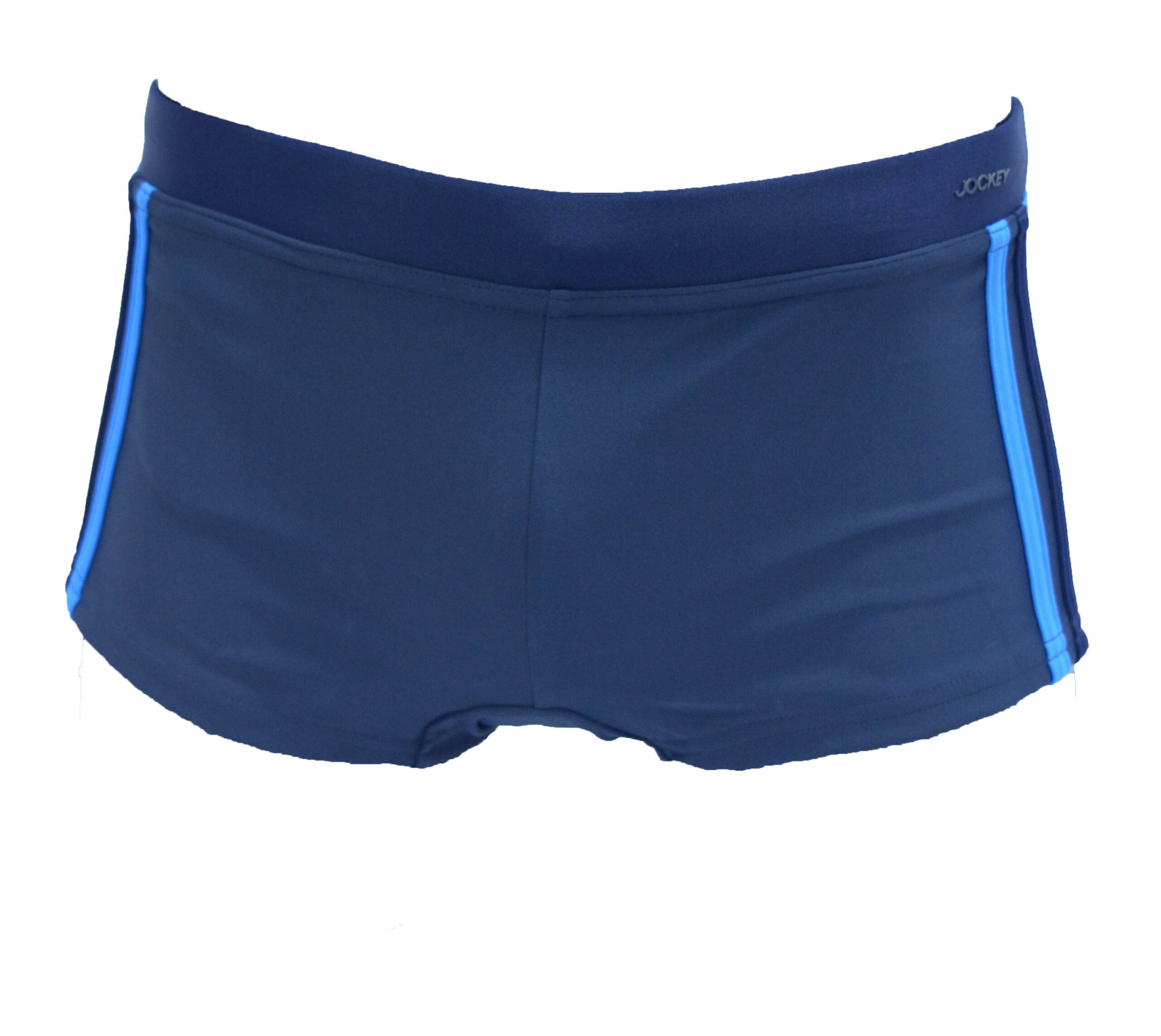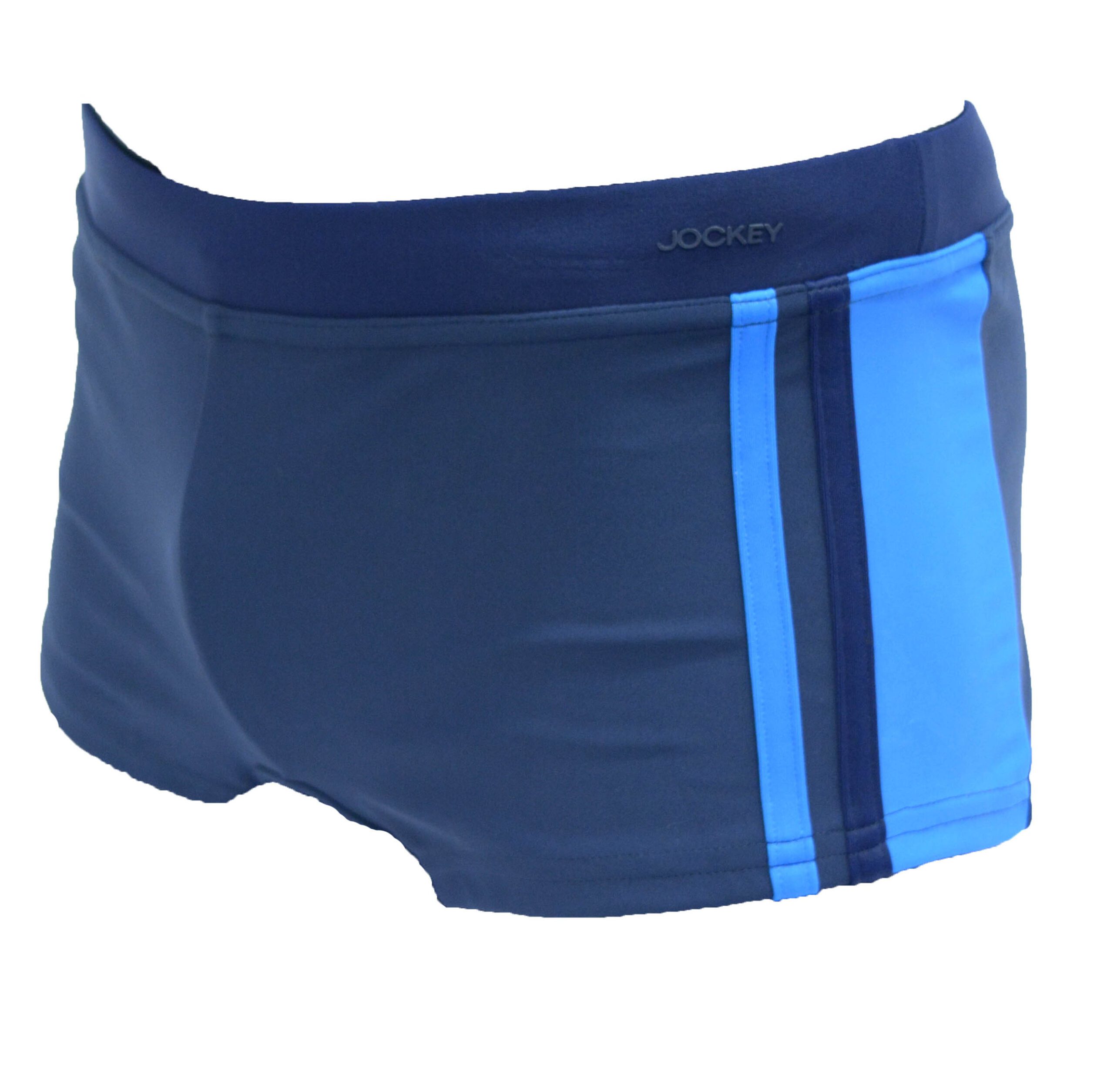 Jockey. Navy Classic Swim Trunks. Deep Side Body with Feature Stripes.