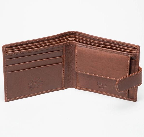 Charles Smith. Tan Colorado Analine Calf Leather RFID Safe Tab Notecase. Featuring 3 Note Compartments, 3 Card Slots and Stud Pouch for Change.
