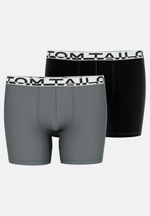 Tom Tailor. Twin Pack of Grey & Black Long Knitted Boxer Shorts