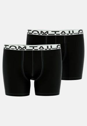 Tom Tailor. Twin Pack of Black Long Knitted Boxer Shorts