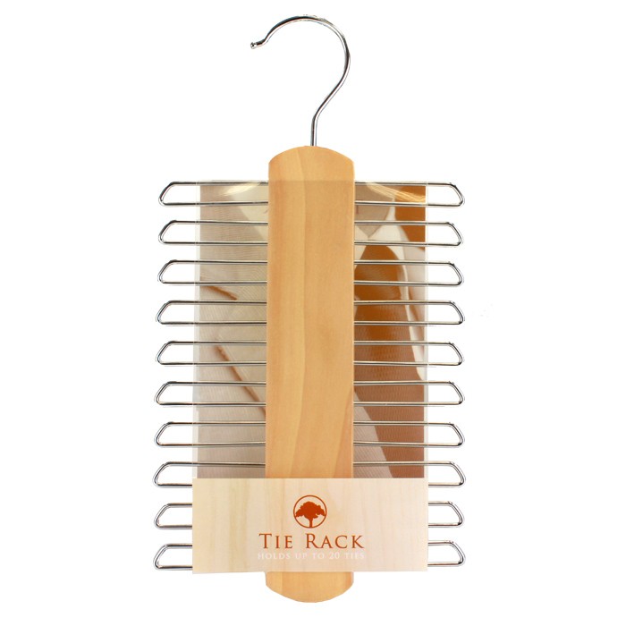 Wardrobe Rail Hanging Natural Beech Wood 20 Hook Ladder Tie Rack.