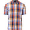 Fynch Hatton. Brick, Caramel and Navy Block Check Button Down Collar Short Sleeve Cotton Casual Shirt