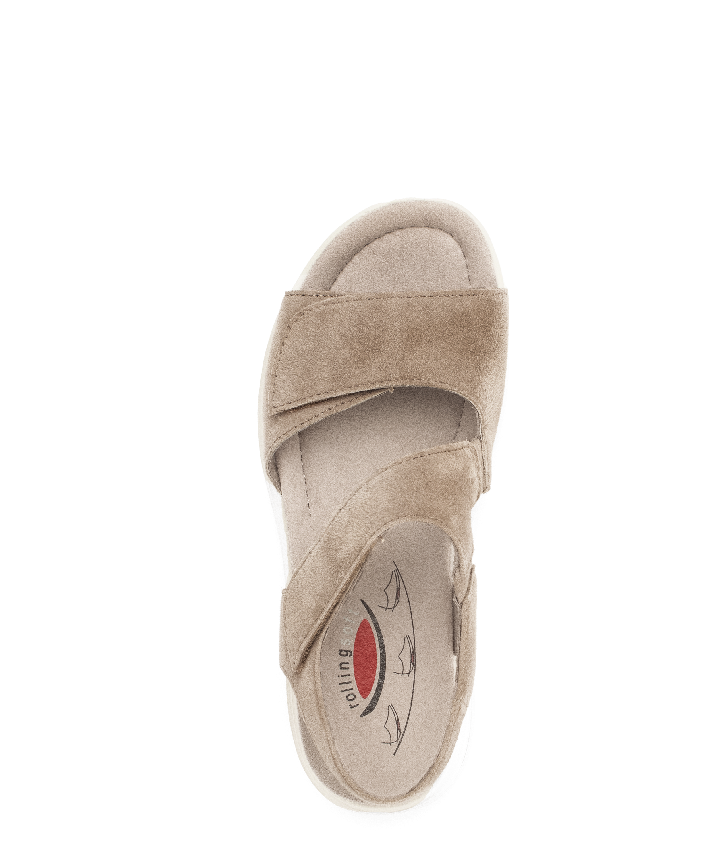 Gabor Rollingsoft. Sand Touch Fastening Strap Sandal with Adjustable Rear Strap