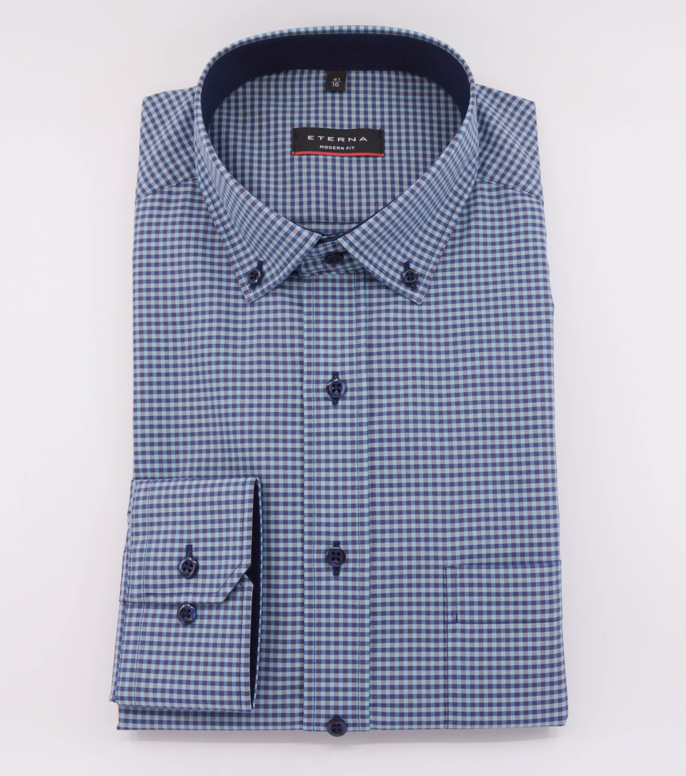 Eterna Modern fit Teal and Navy Gingham Check long sleeve shirt.
