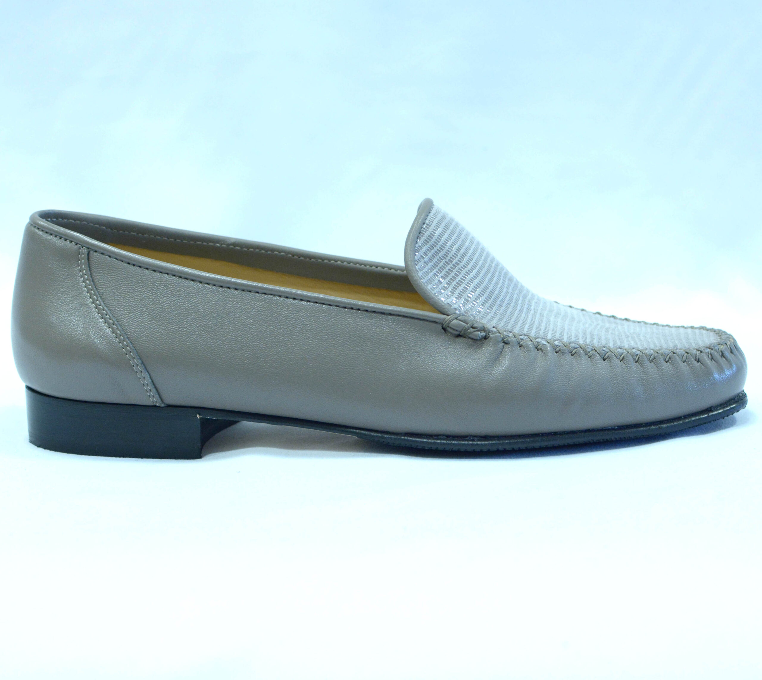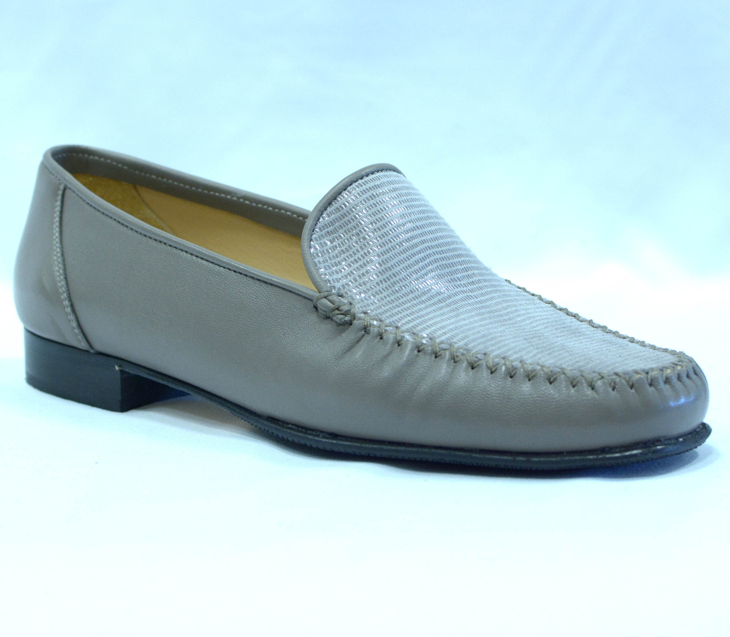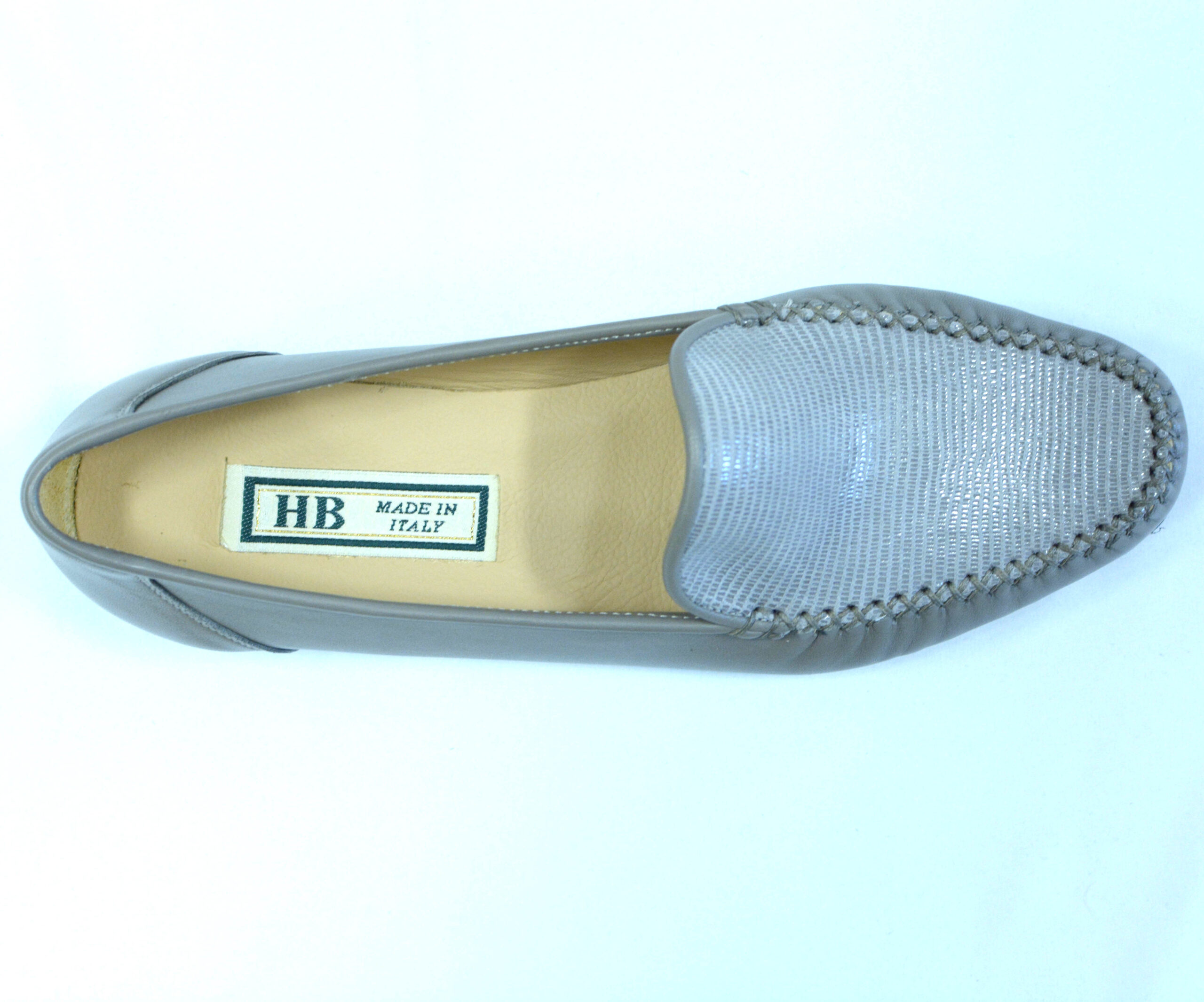 HB Shoes Italia, Grey Leather with Grey Feature Apron Detail, Low heel Loafer.
