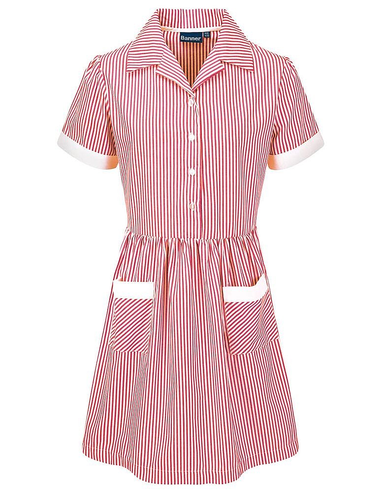 Red Bengal Stripe Summer Dress, Rever Collar,