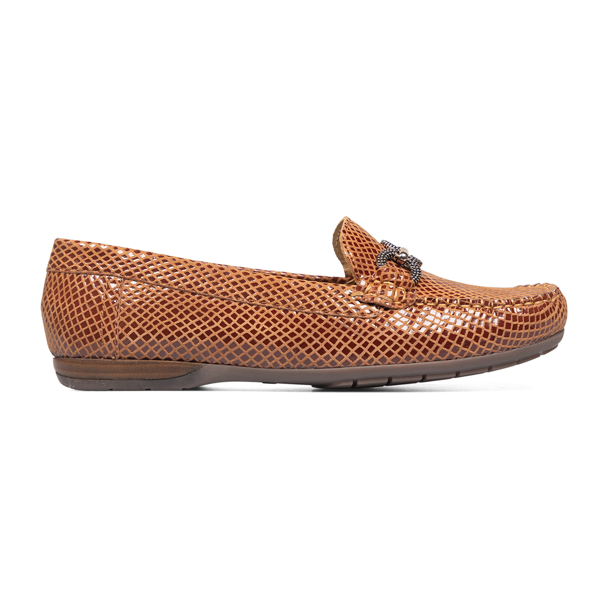• Van Dal.  Tan Python Leather Chain Fronted Loafer