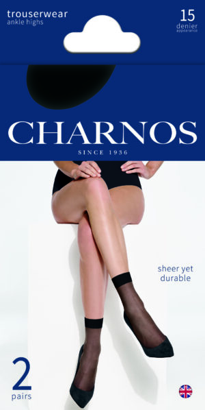 Charnos 15 denier sheer ankle highs, 2 pair pack. A matt and durable sheer leg with comfort top and reinforced toe, this classic ankle high offers quality and value for money for everyday wear.