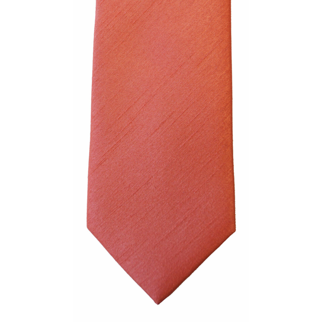 L.A. Smith. Plain Coral Polyester Shantung Full Length Tie.