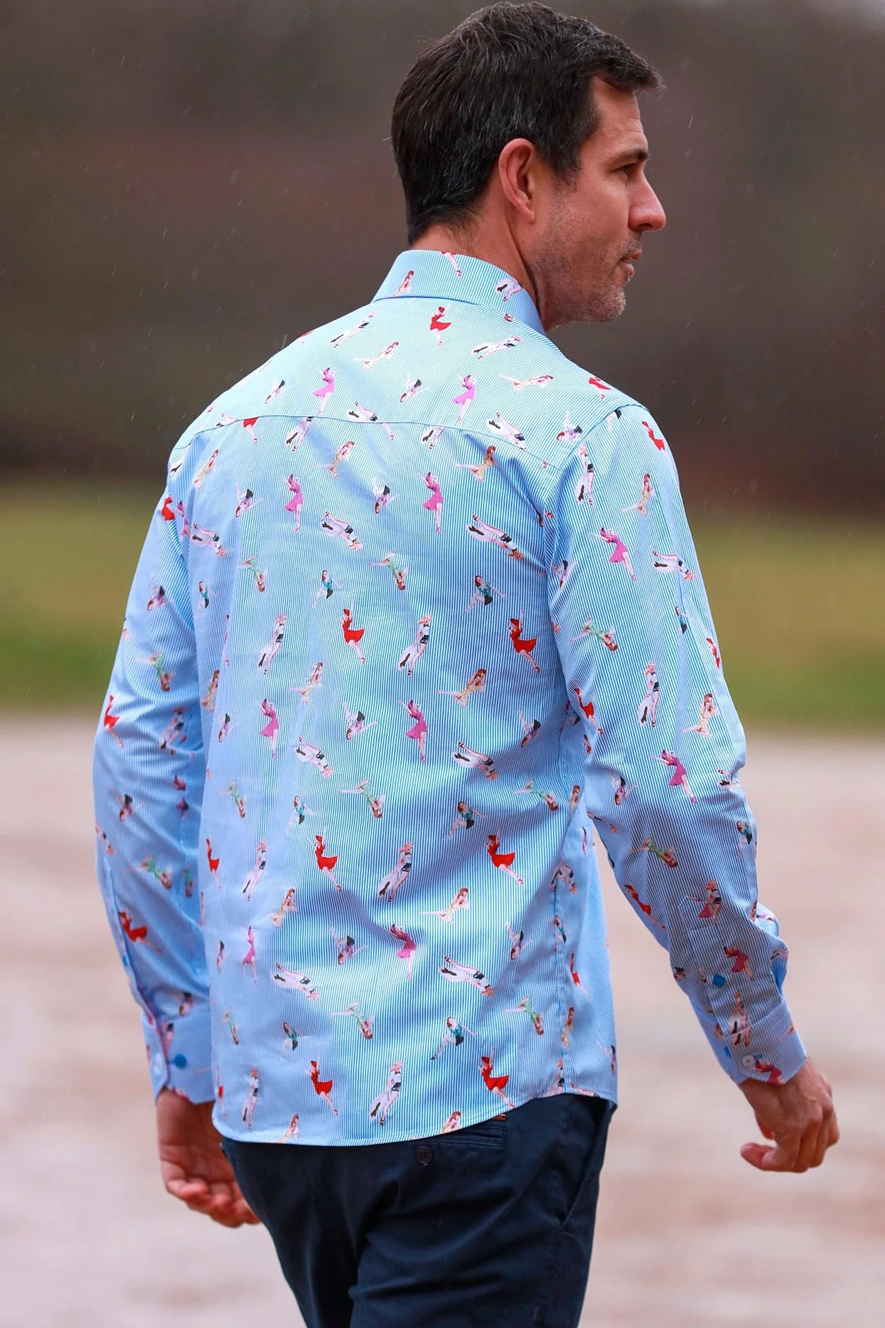 Claudio Lugli Sky Blue stripe featuring pin up girl print, Long Sleeve Cotton Shirt with Toning Pearlised Buttons