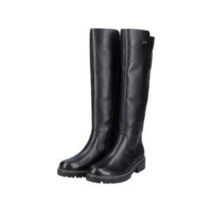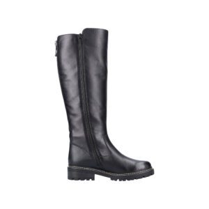Remonte. Black Leather Zip Sided Knee High Boot featuring Rear Fancy Zip.