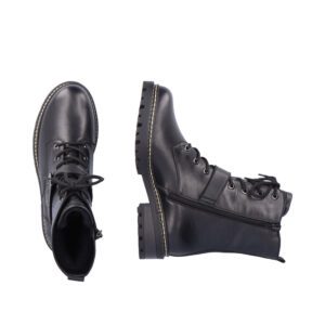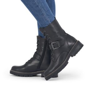 Remonte. Black Lace Fronted Zip Side Access Ankle Length Boots
