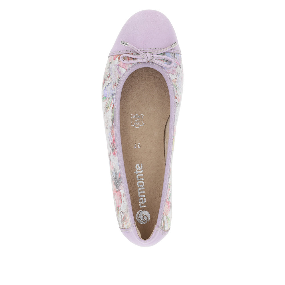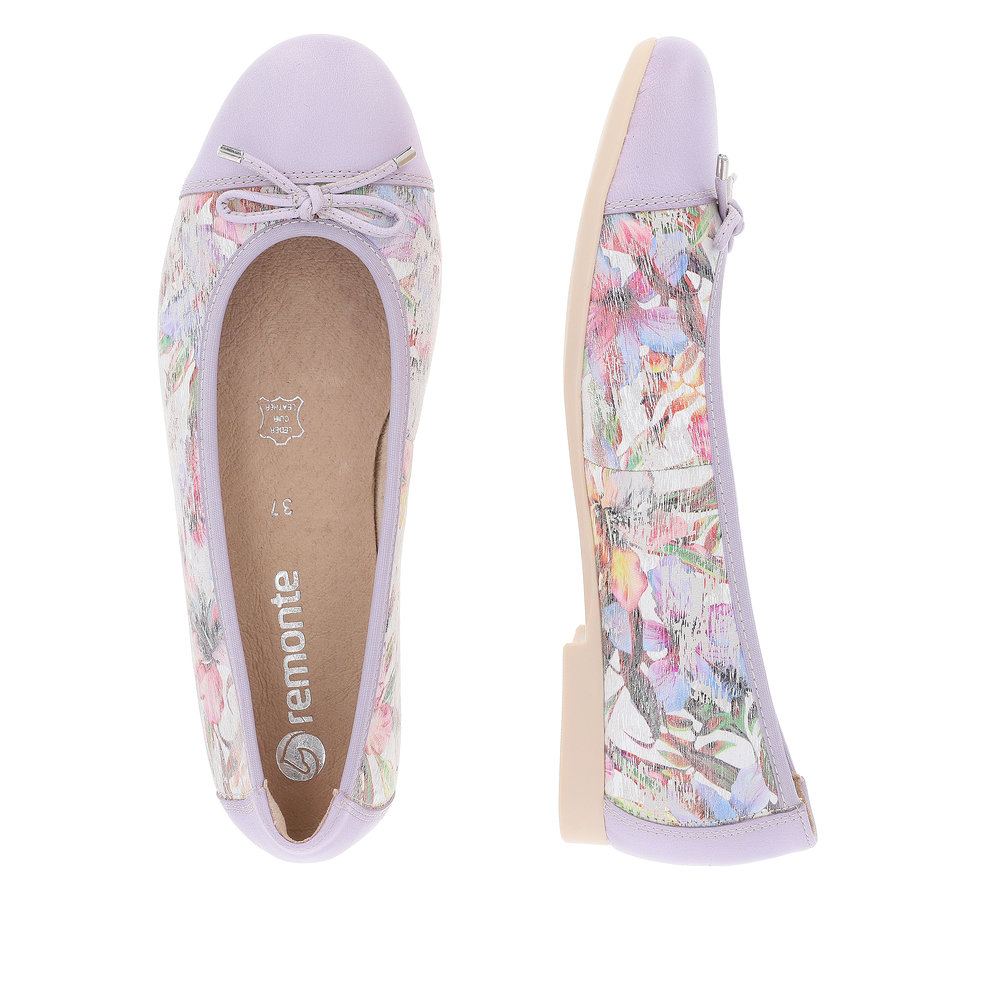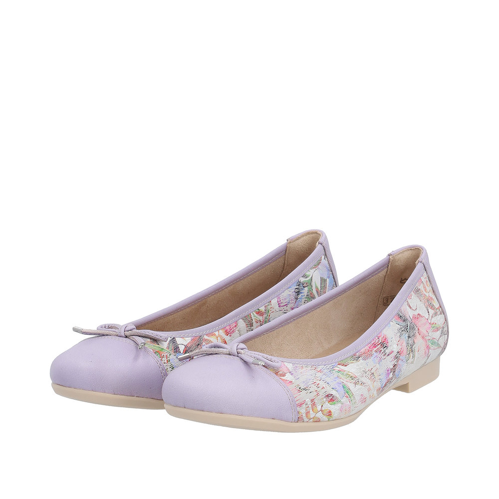 Remonte. Mauve Floral Body with Mauve Bow Fronted Low Heel Pump
