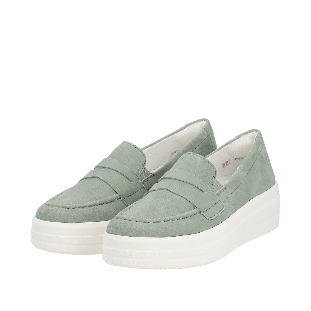 Remonte. Mint Suede Body Loafer with White Sole Unit