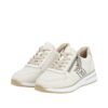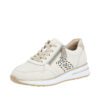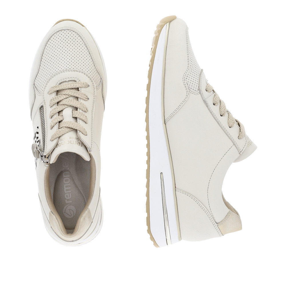Remonte. Cream and Ivory Detail Fabric Lace Fronted Zip Side Access Casual Walker with Wedge Sole