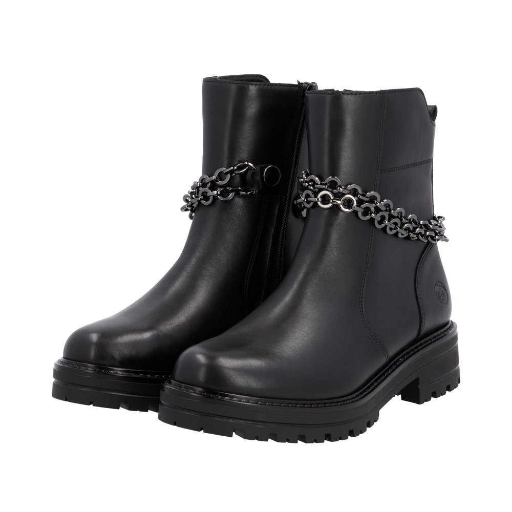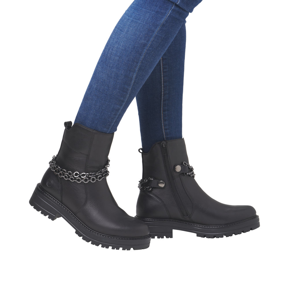 Remonte. Black Side Zip Fastening Lined Ankle Boot with Chain Wrap. Liz Hurley Styling
