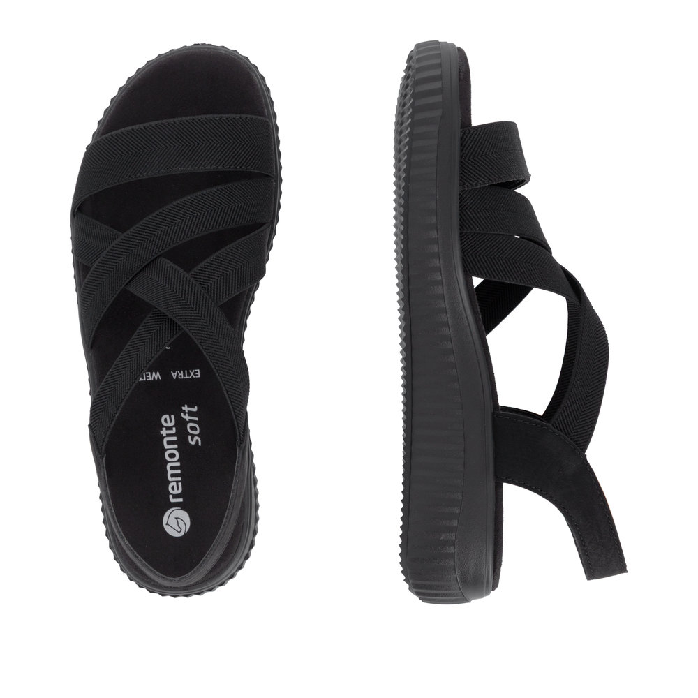 • Remonte Black Multi Strap Sandal With Wedge Sole