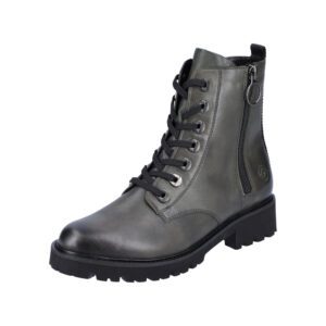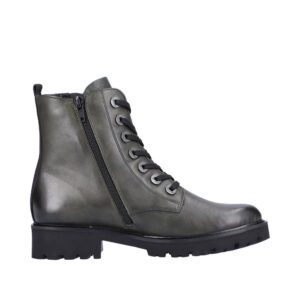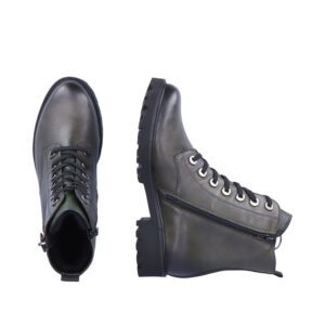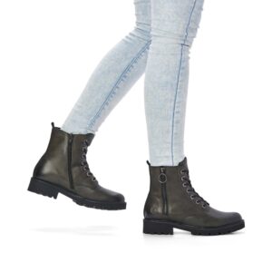Remonte. Leaf Green Leather Lace Front Double Zip Side Access Ankle Boot