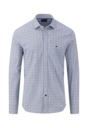 Fynch Hatton. Blue Print Long Sleeve Premium Cotton Casual Shirt with a Soft Collar.
