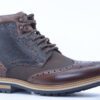 Lacuzzo. Brown Brogue with Zug Grain Top Piece Leather Trekker Style Ankle Boot. Featuring Sheepskin Lining and Zip Side Fastening. 7 Eyelet Lace.