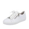Rieker Ladies White Lace Fronted Zip Side Access Casual Walker with White Sole Unit