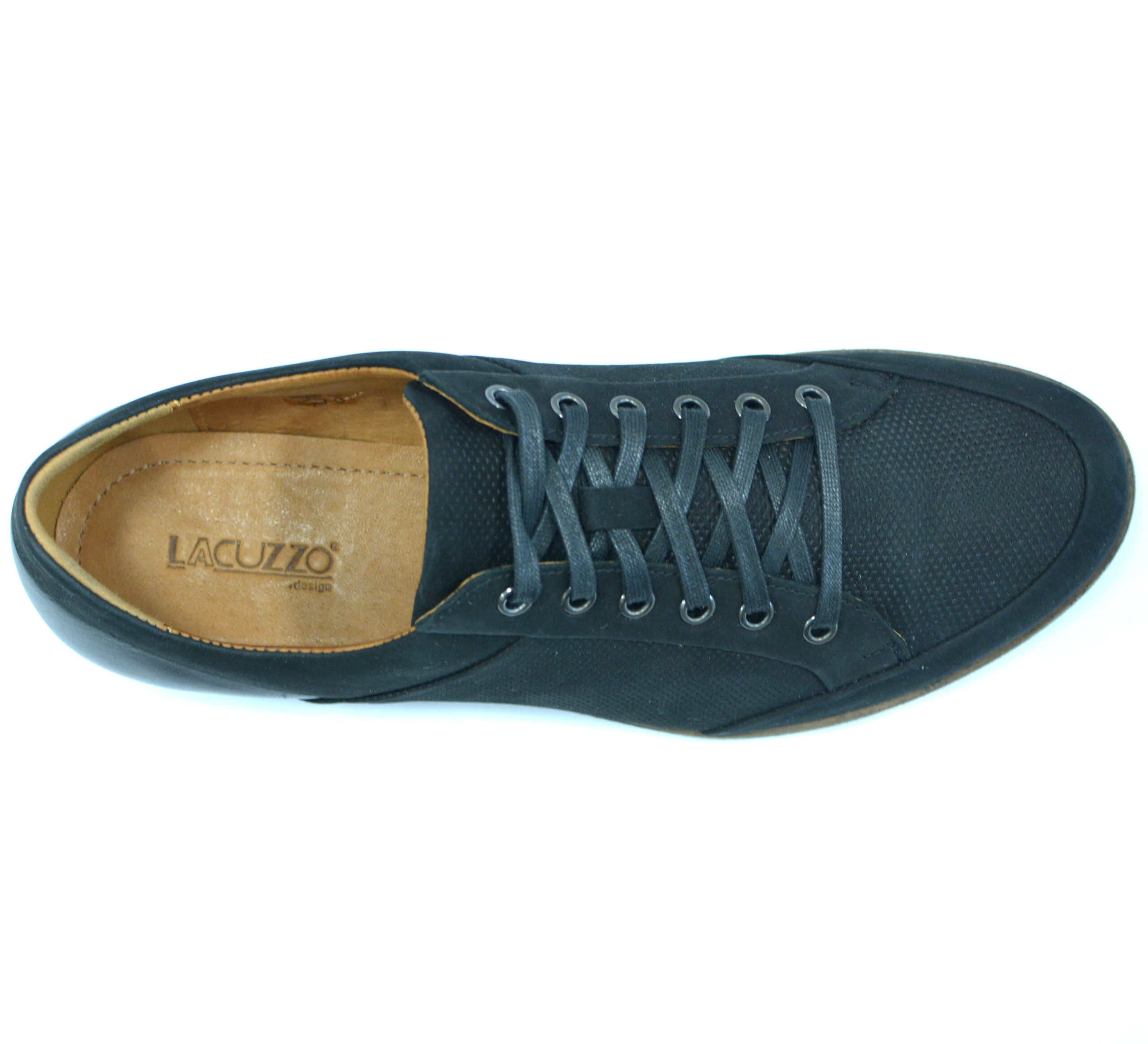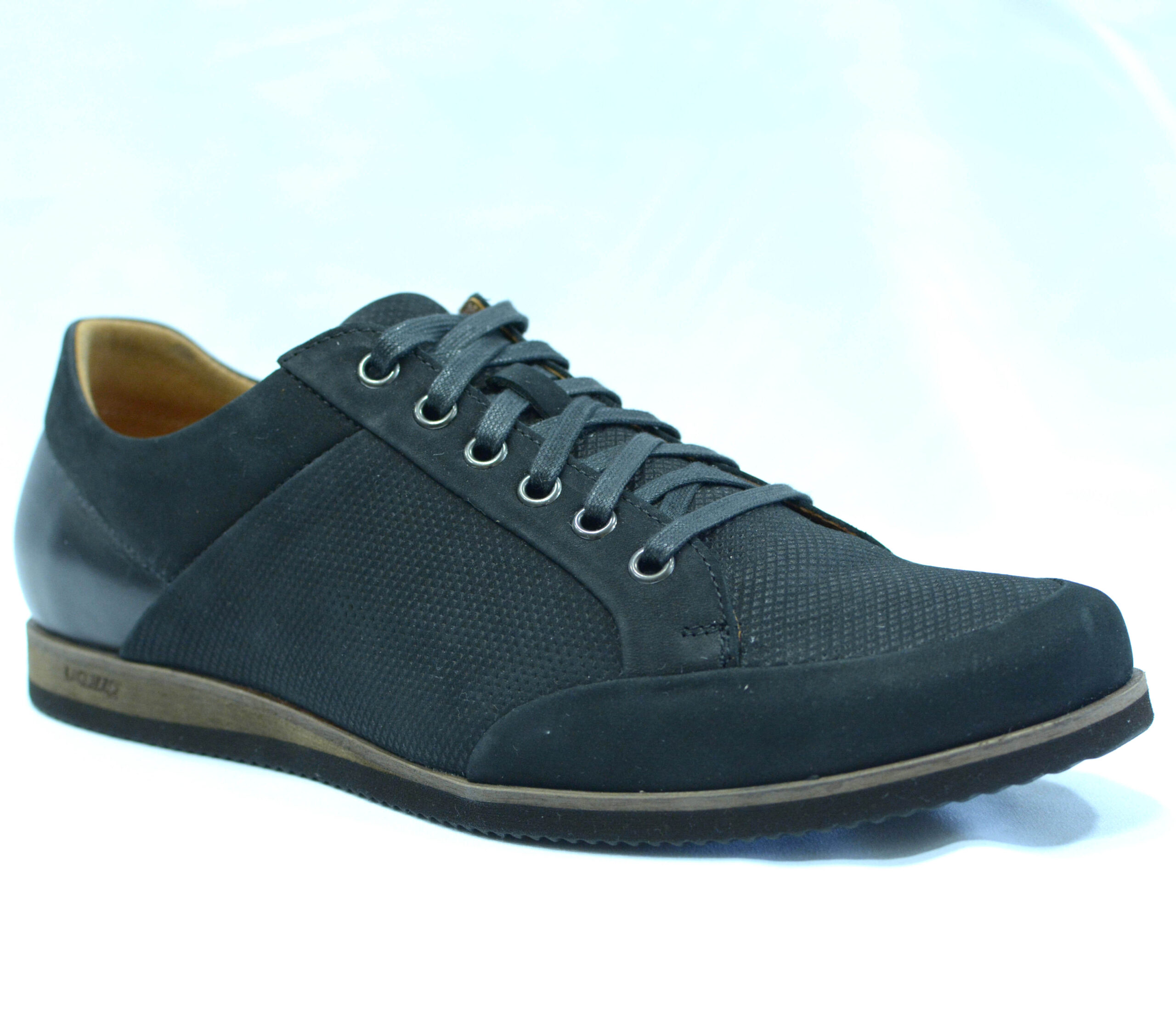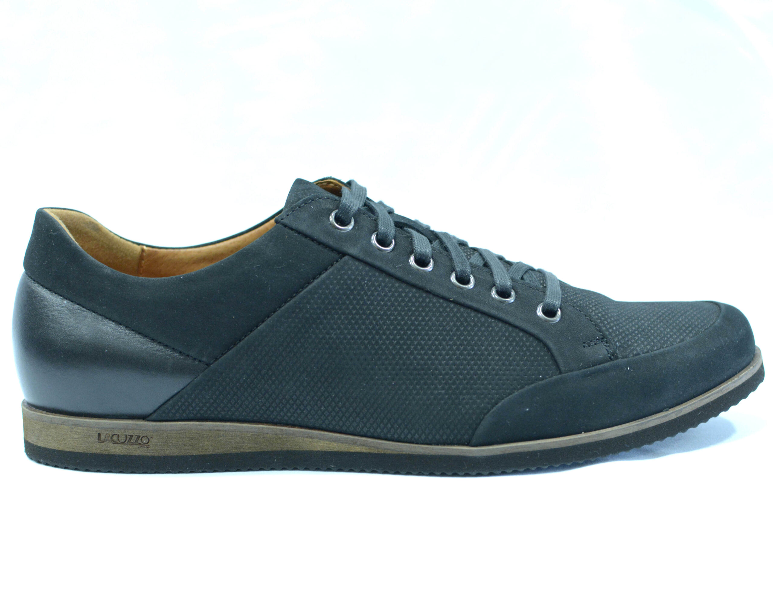 Lacuzzo. Black Suede and Leather Casual Shoe. 6 Eyelet Lace.