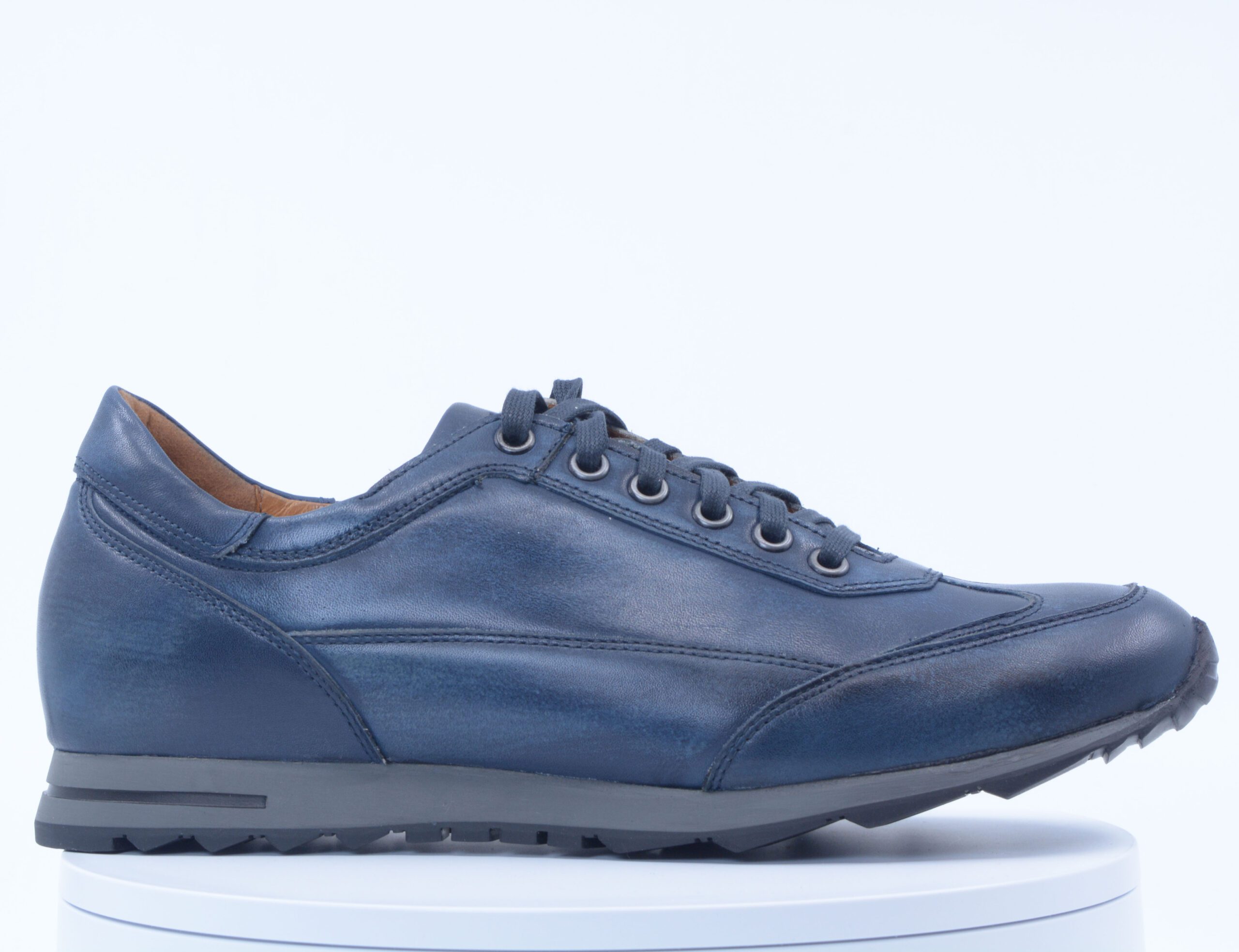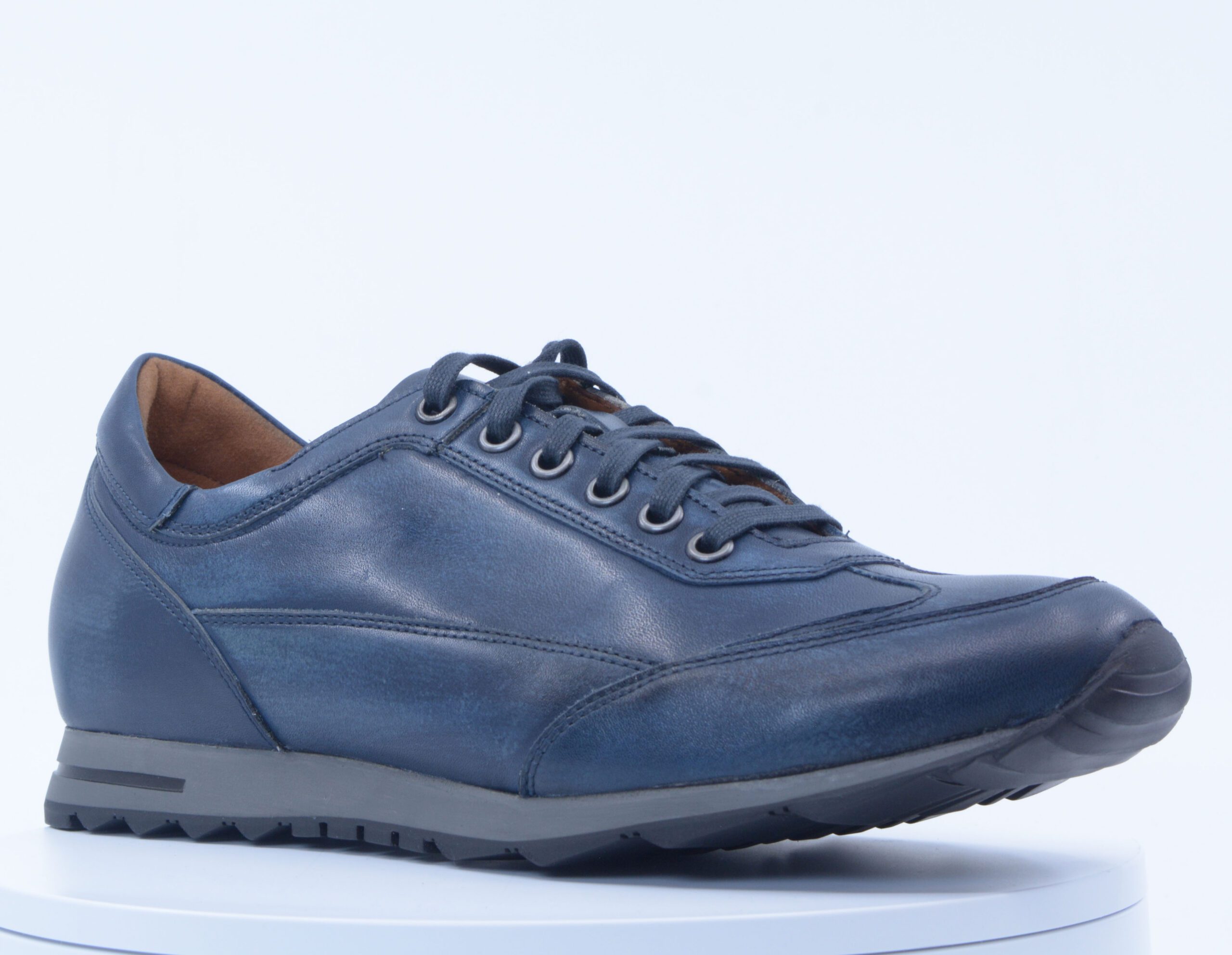 Lacuzzo. Antique Navy Leather Casual Shoe. 6 Eyelet Lace.
