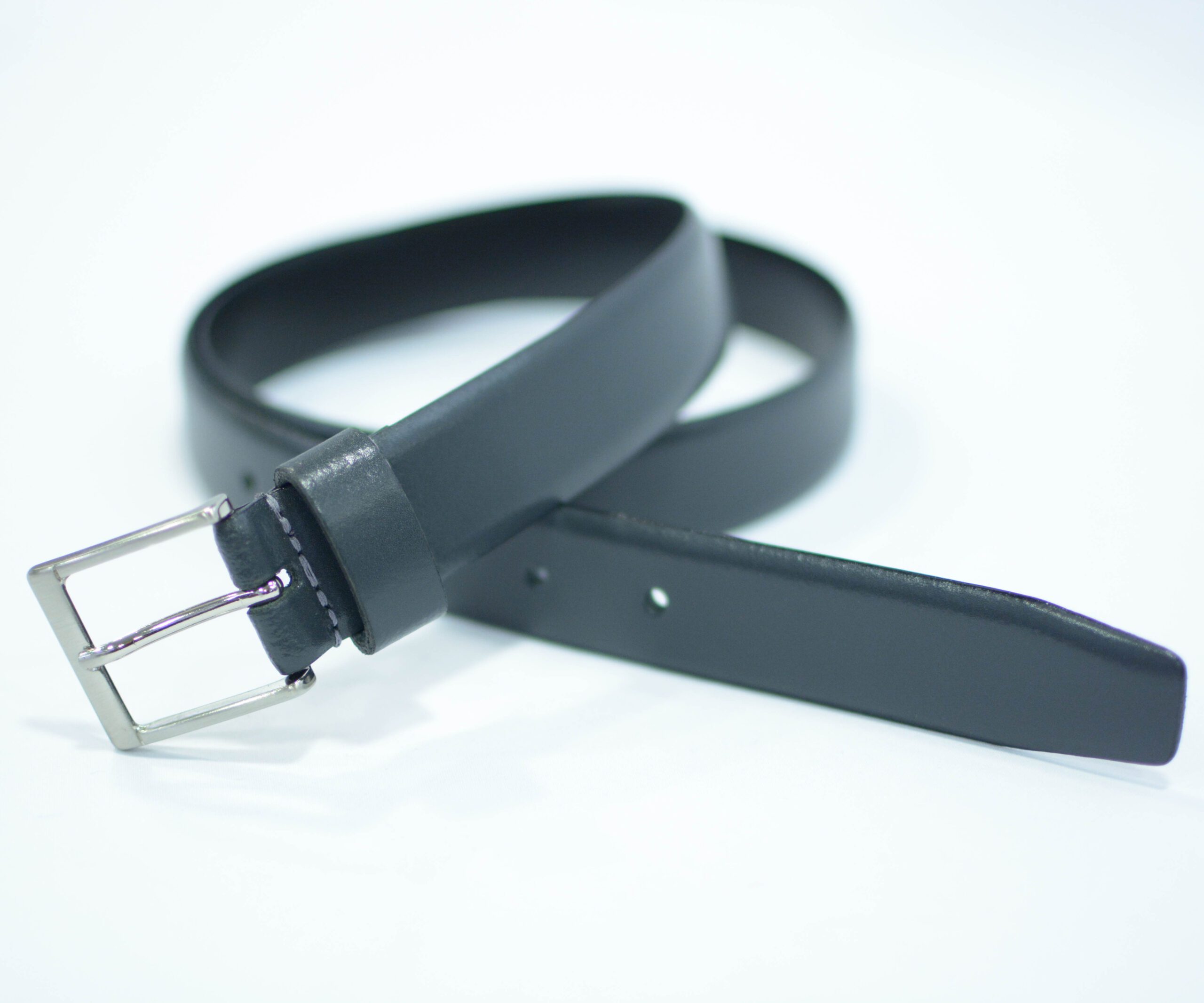 Ibex Grey Leather Dress Belt featuring a feather edge.