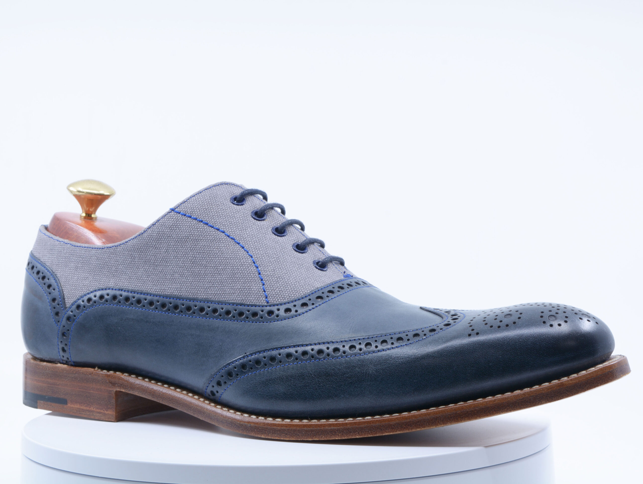 Barker Hand Painted Navy Leather & Canvas Brogue