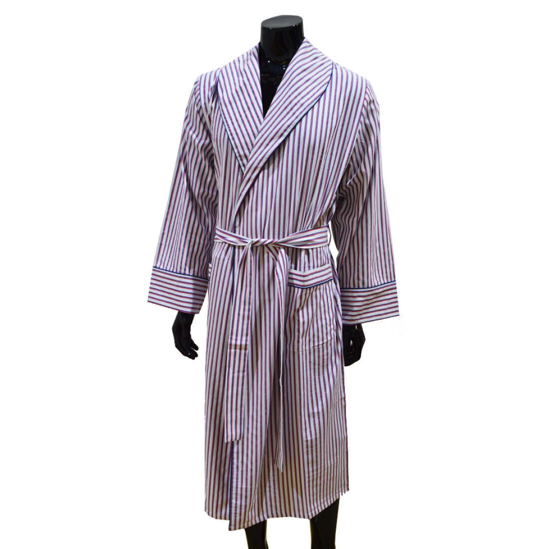 LA.Smith. White Stripe Lightweight Sanitised Fabric Dressing Gown