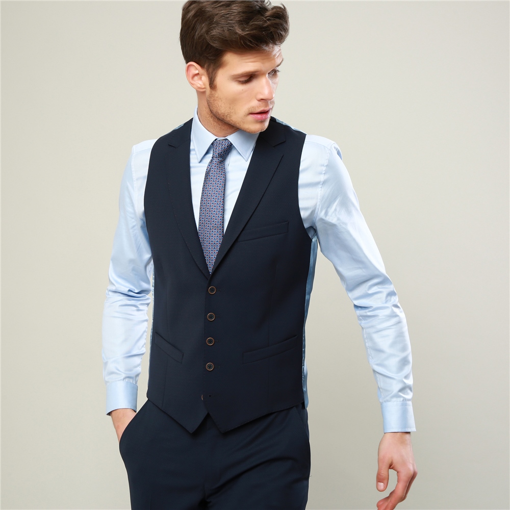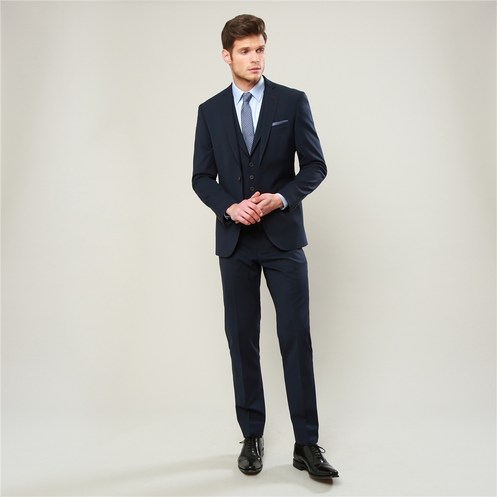 CompareMagee. Single Breasted Navy Blue Self Satin Design 3 Piece Suit in the Nice Classic Fit Style