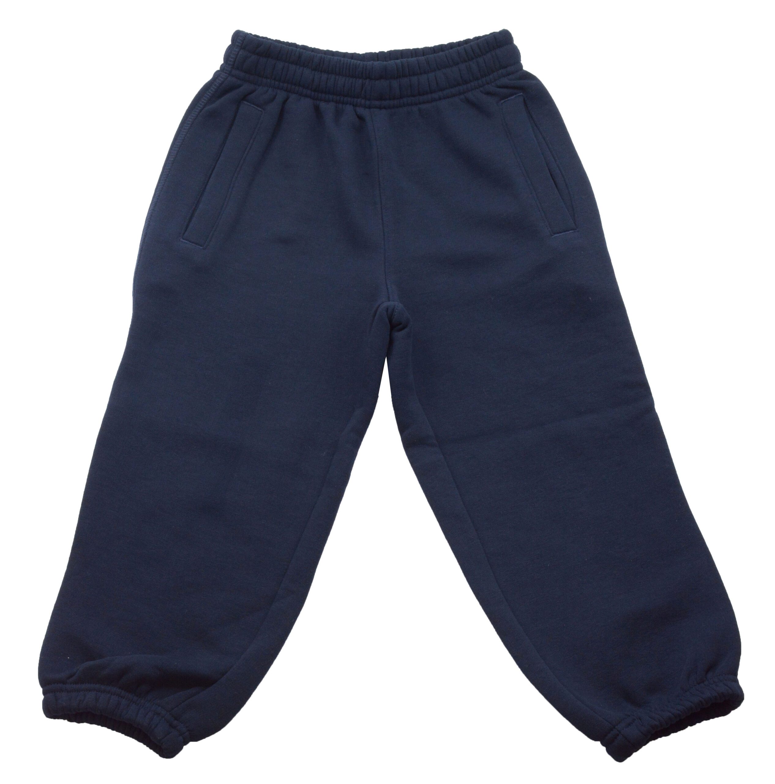Plain Navy Jog Pants, Soft Handle Brushed Back Fabric. Side Pockets. Elasticated Waistband and Bottom Cuffs.