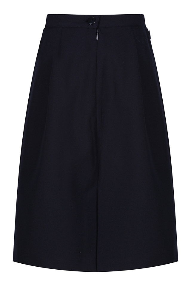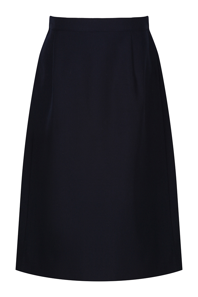 Navy Blue Polyester/Viscose Straight Skirt with Vent,