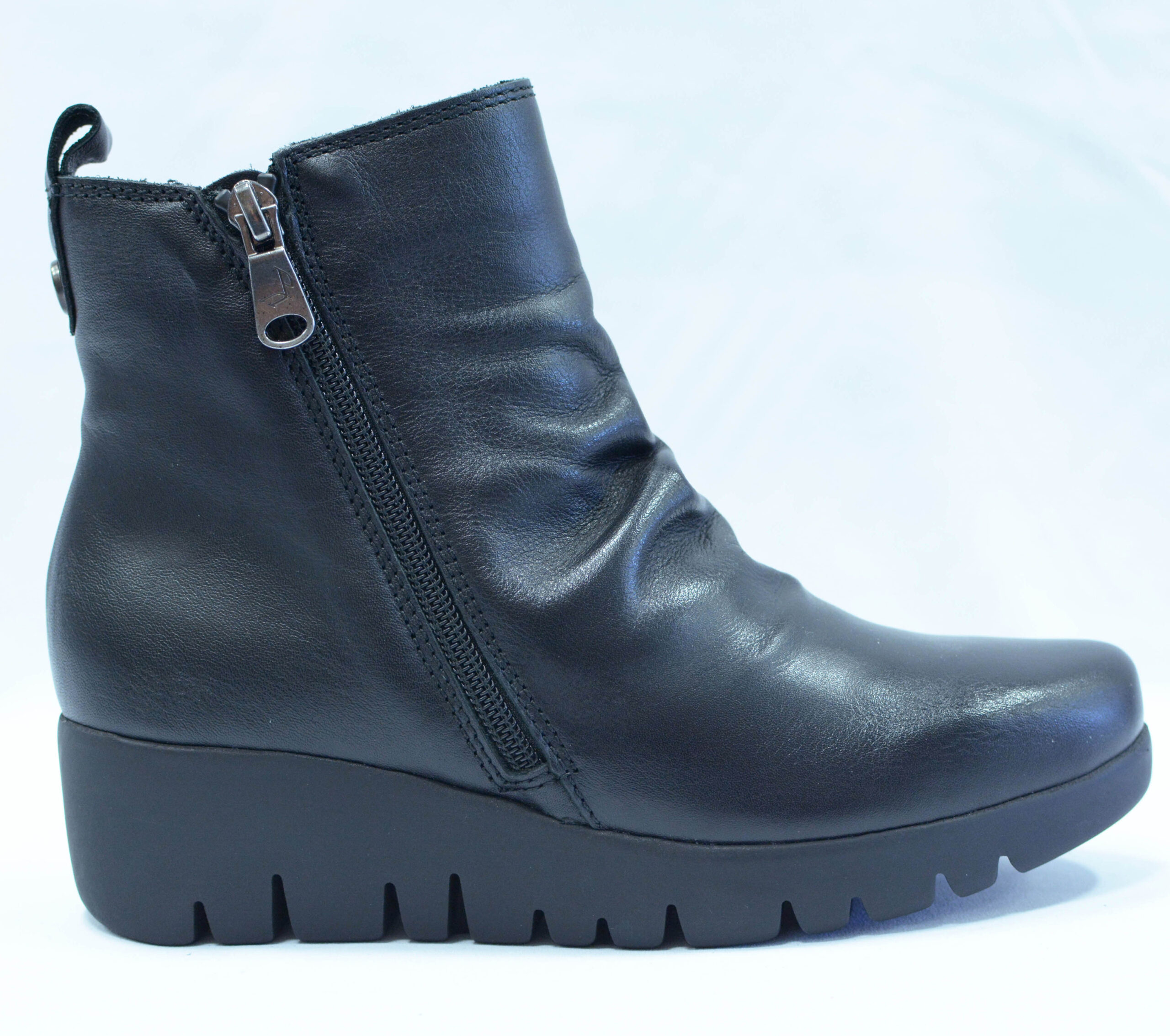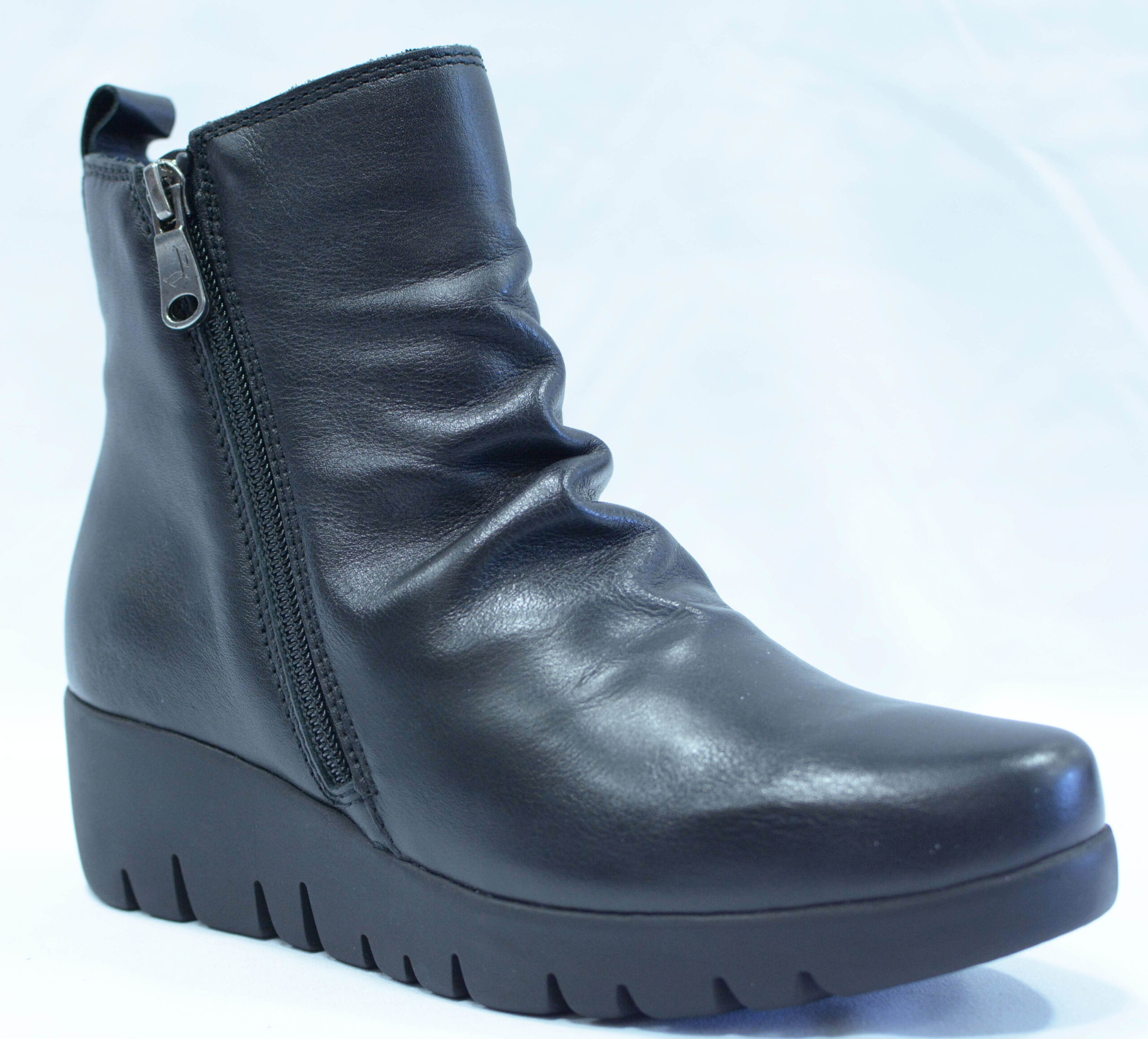 Paula Urban. Supple Folded Leather Detail, Wedge Sole, Zip sided Ankle Boot.
