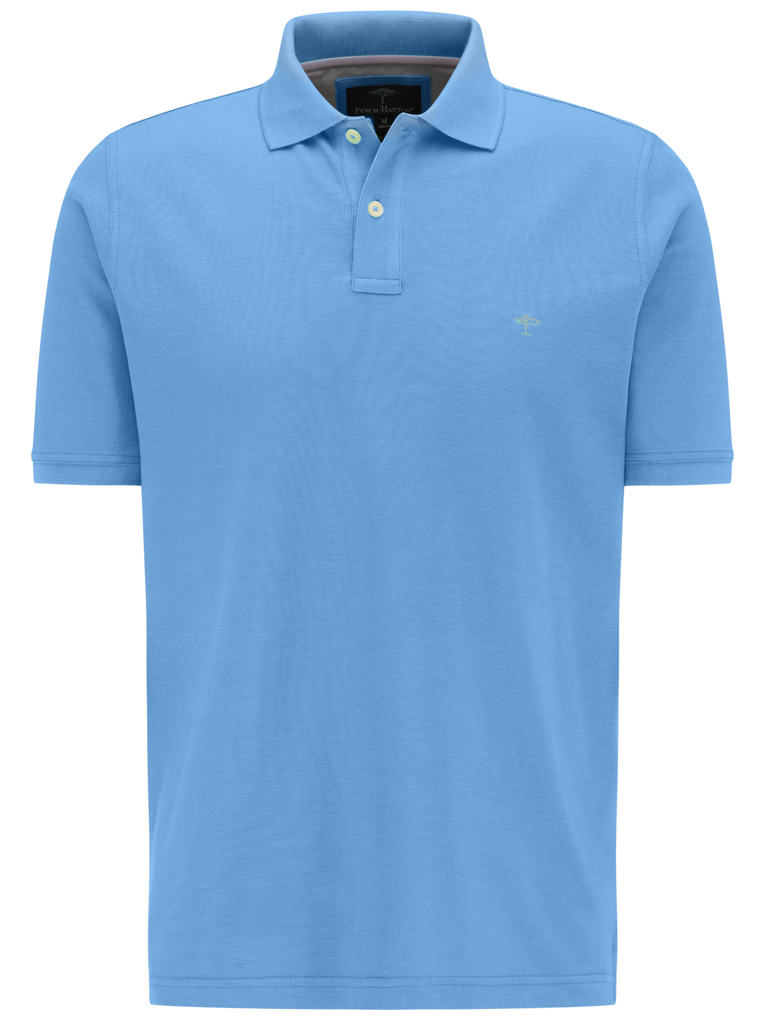 Fynch Hatton. Plain Supima Cotton Polo top in ‘Soda’, with flat knit collar and button fastening.