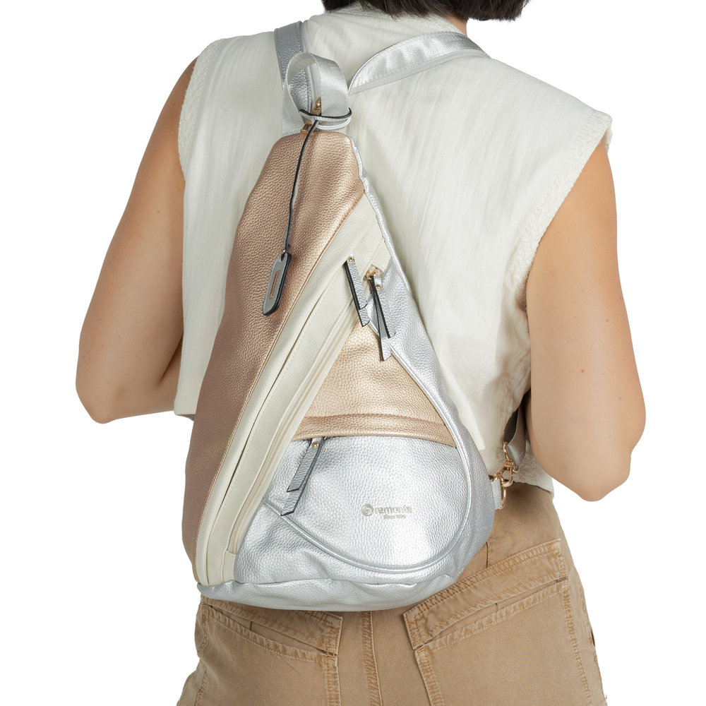 Remonte Silver and Gold Teardrop Shape Backpack with Multi Zip Fastening and Front Pockets