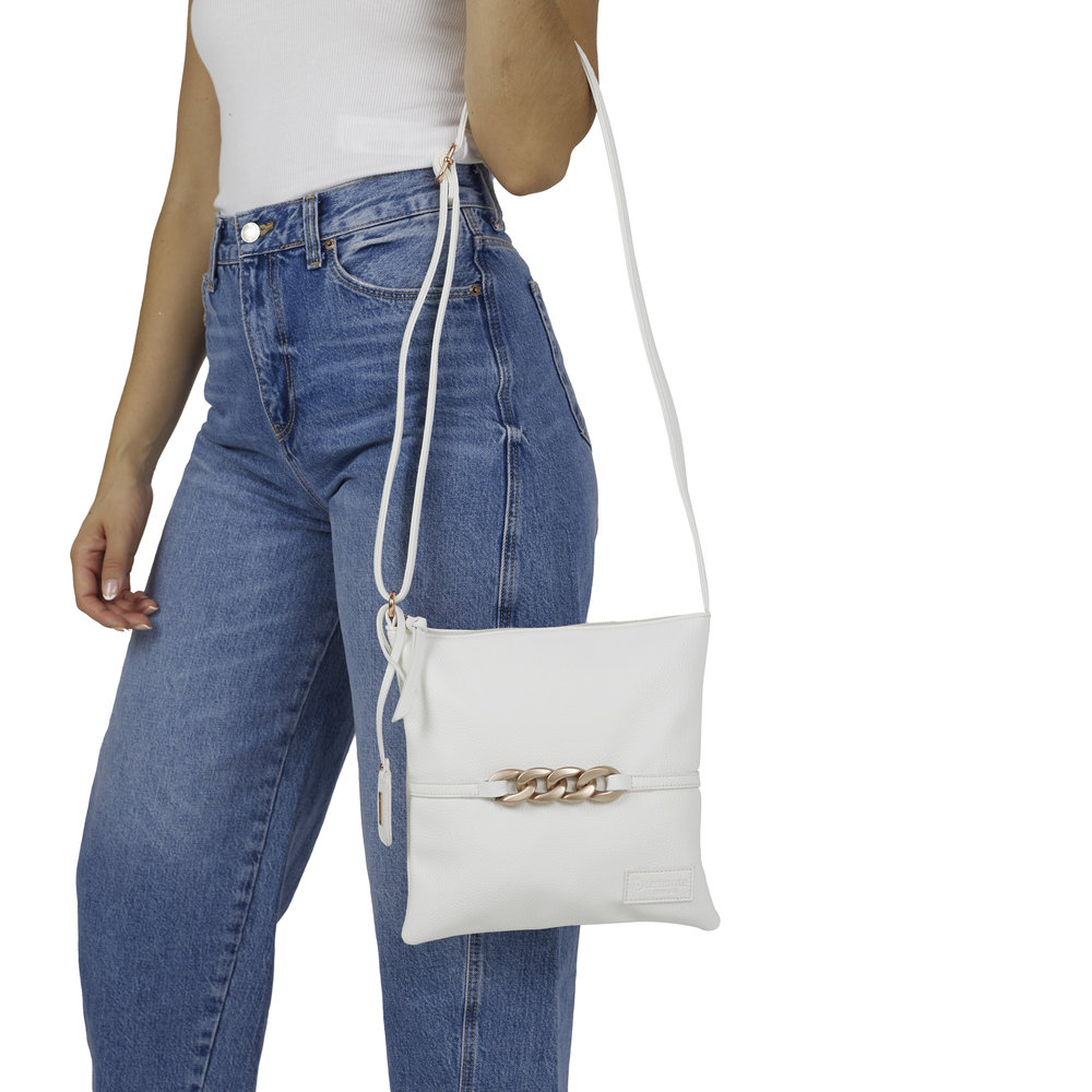 Remonte White with Rose Gold Chain Detail Fronted Mid Size Shoulder Bag